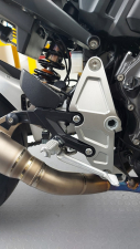 • Pinza freno radiale Accossato forgiata monoblocco interasse 108 mm con pistoni in alluminio (dopo 5 mesi di attesa, abbiamo mandato a quel paese Brembo: evidentemente non ha interesse a vendere...) con tubi in treccia HEL