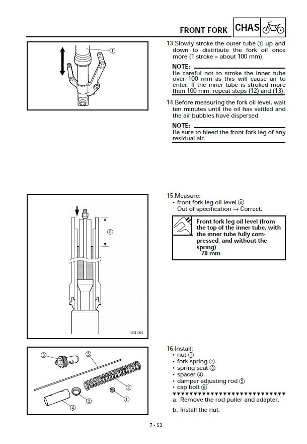13. Vorrei far notare che io ho postato la foto della pag. del manuale della Yamaha R1 di cui uso le forcelle e che pesa praticamente come la MT-03. Voi parlate invece delle forcelle della MT-01 .. tutt'altra minestra. Forcelle e moto di cui nulla sò