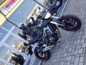 ... mi presento ... mi chiamo Ivana e sono una diversamente giovane ... sempre zavorrina ma con il sogno nel cassetto di poter guidare una moto mia ... prima la famiglia ... il dovere di genitore ... poi la figlia ormai grande e il cassetto si è aperto ... il Monster troppo costoso anche da usato e nel 2007 Suzuki GS500 e nel 2008 Suzuki SV650 ... splendida moto ... divertente ... adatta ai neofiti perchè aiuta molto e soprattutto perdona molto ... 87000 km in sei anni e poi si è presentata la voglia di avere qualcosa in più ... ed è uscita LEI ... la MT 09 ... amore a prima vista ... test-ride dal concessionario a ottobre dello scorso anno ... gli faccio ... se vado a prendermi un caffè su a Montezemolo ... la faccio vedere ... posso? ... lui mi fa ... un pò di benzina c'è ... tu và ... detto-fatto ... l'ho tenuta per più di due ore ... ormai mi dava per spersa ... e quando sono tornata ormai mi era entrata nell'anima ... comprata e ritirata il 25 febbraio 2014 e a oggi sono stati i 17000 km più belli e contrastati della mia vita motociclistica ... ah sì Matt Grey