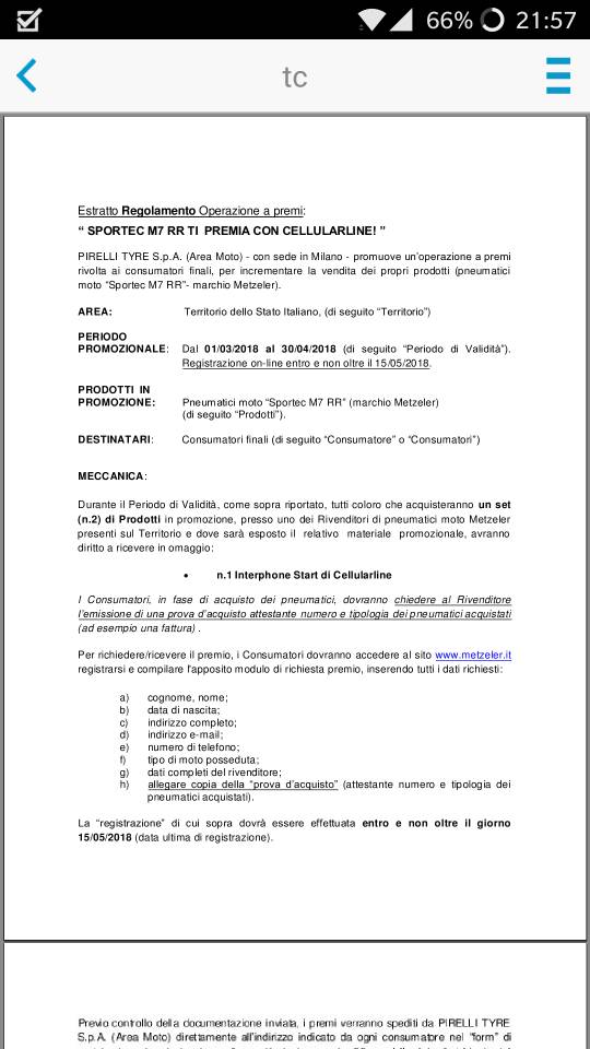 Ciao ho visto sul sito di Metzeler questa promozione sulle M7rr che durerà fino a fine aprile. Regalano un interphone start di cellularline