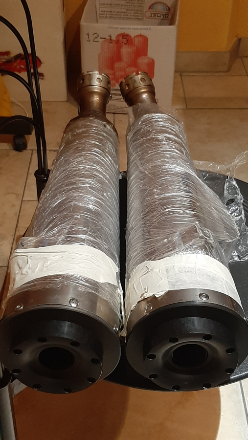 Scarichi completamente rifatti internamente ( un po' più a dritto diciamo ) usando i tubi originali e fondelli di alluminio anodizzato simil pezzi di artiglieria pesante! haha Più grezzi di così non mi è riuscito!!! ??- (MT-01) cerco pezzi