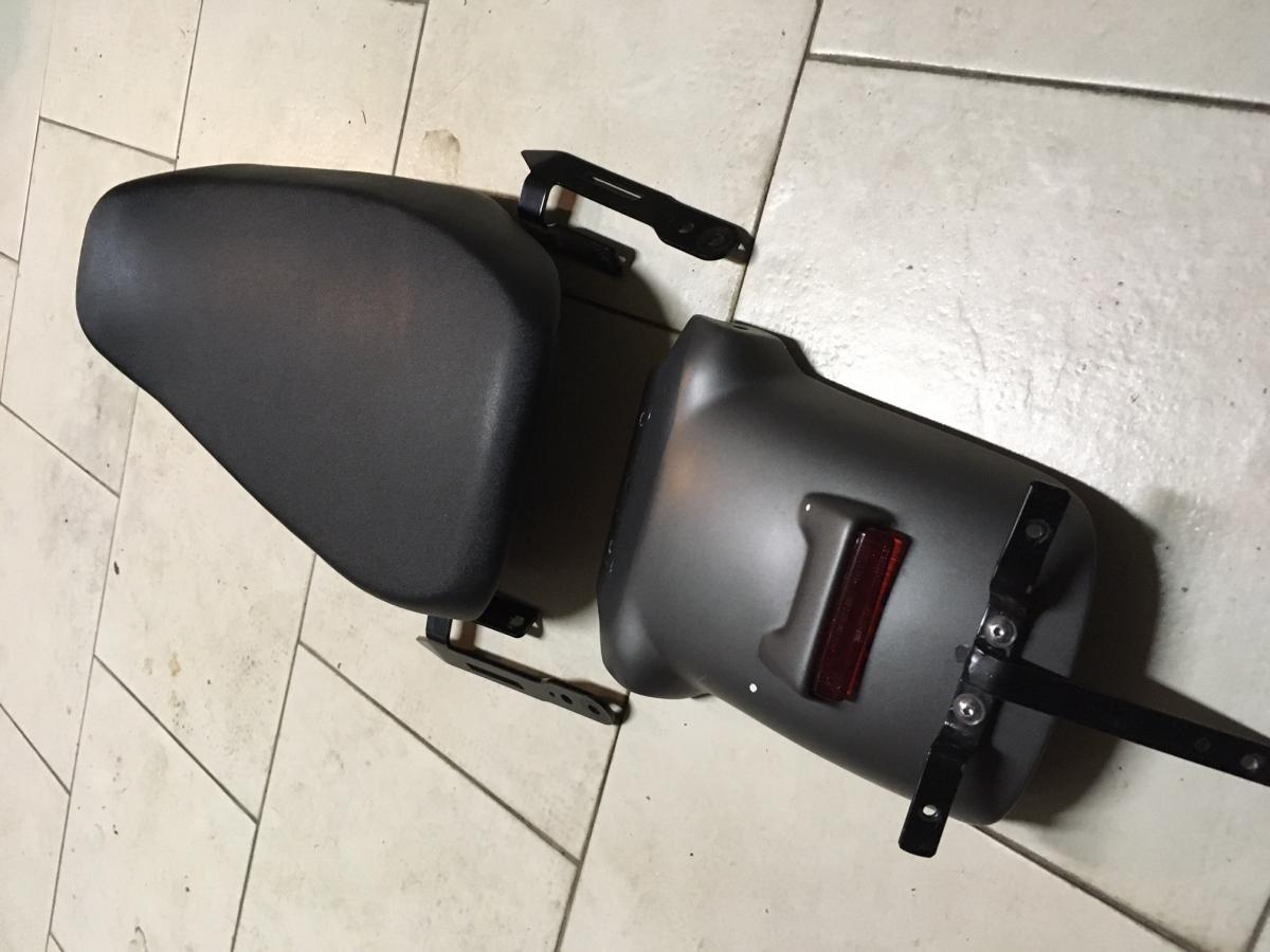 Ciao, oltre a sella e codino ho cambiato scarico, frecce, leve e fianchetti, non il faro (ho ancora quello originale), ho dovuto smontare il sellino per essere un po' più comodi in 2, solo x quello.